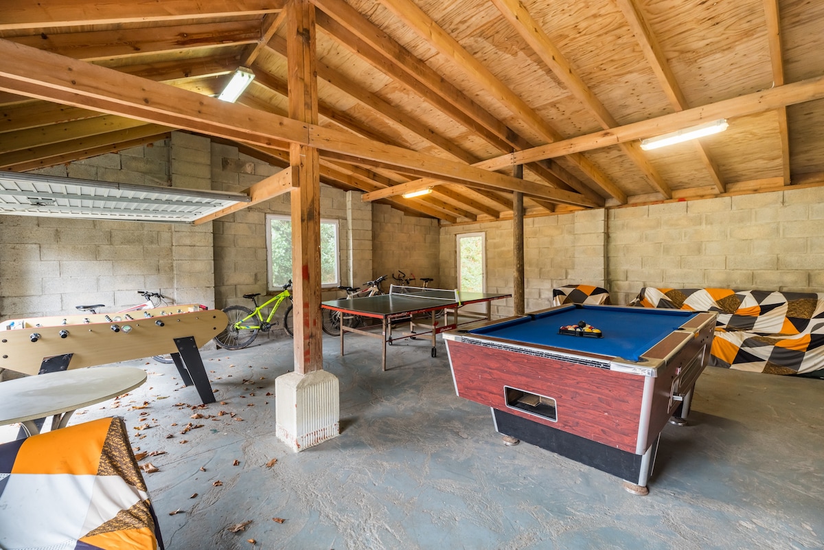 * GAMES ROOM with pool table, table football, table tennis