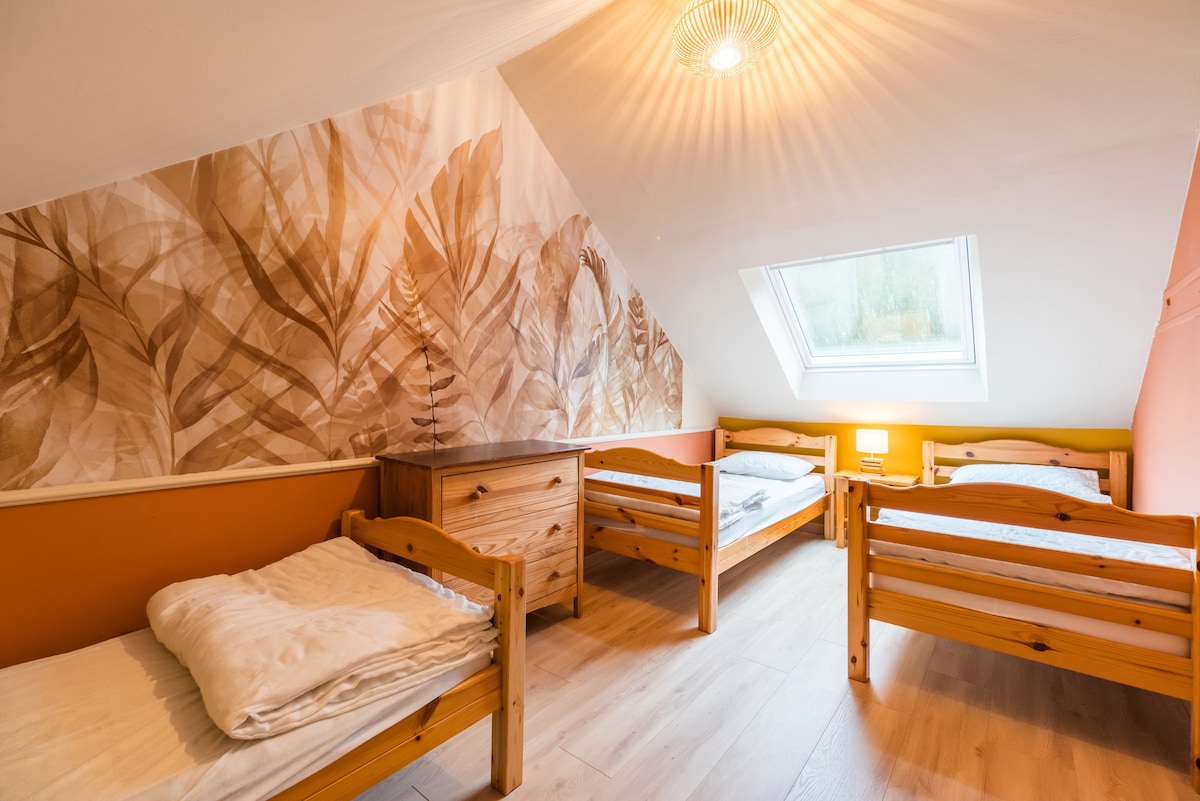 - 1 bedroom with 3 single beds