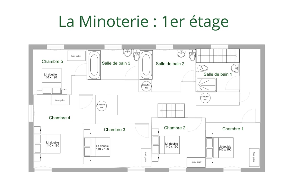 - 5 bedrooms of 10 to 12 m2 with double beds
