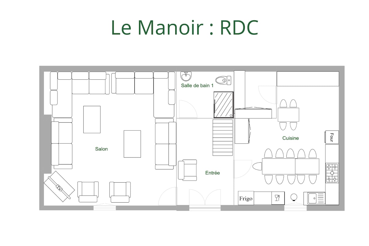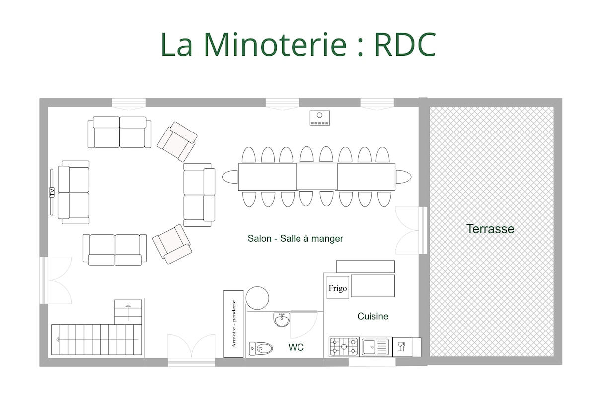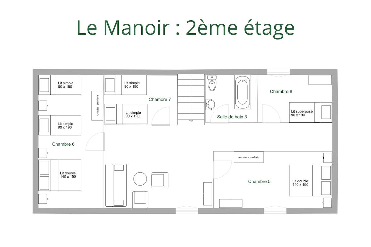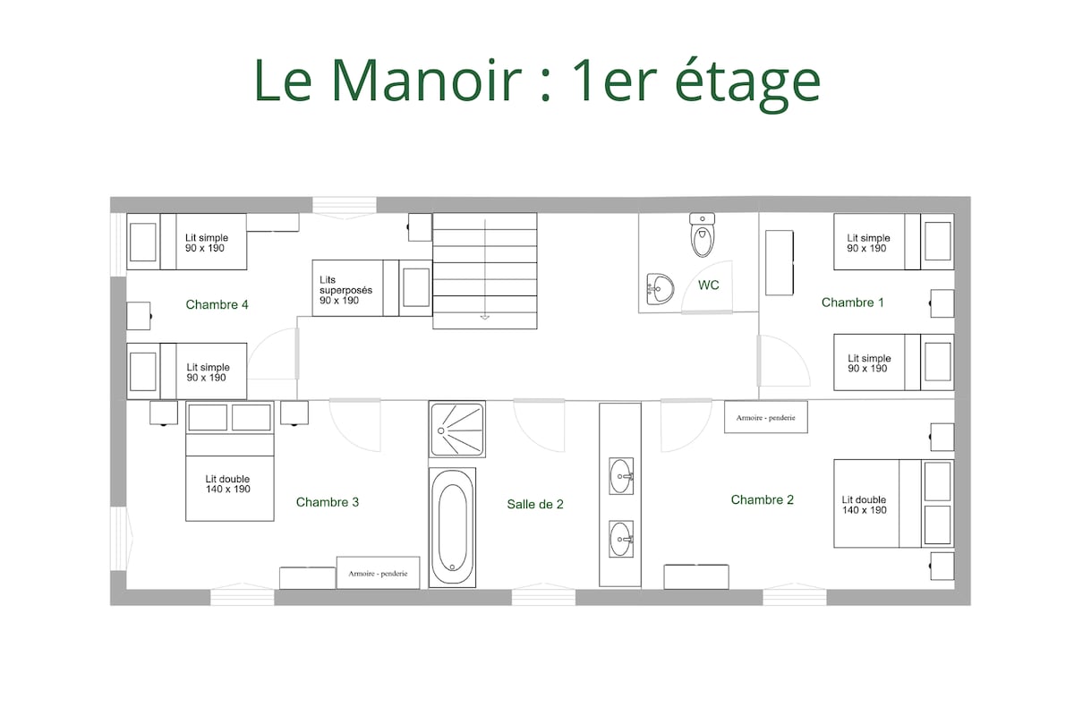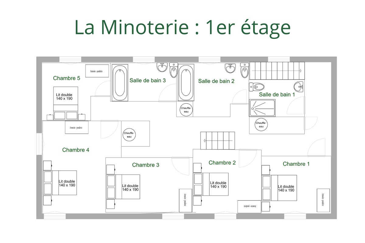 * HOUSEHOLD EQUIPMENT available on arrival (to be renewed by you during your stay): bin bags in each bin, a roll of toilet paper per toilet, a sponge and tea towels per gîte, washing-up liquid, cleaning products, hoovers, bucket and mop.
