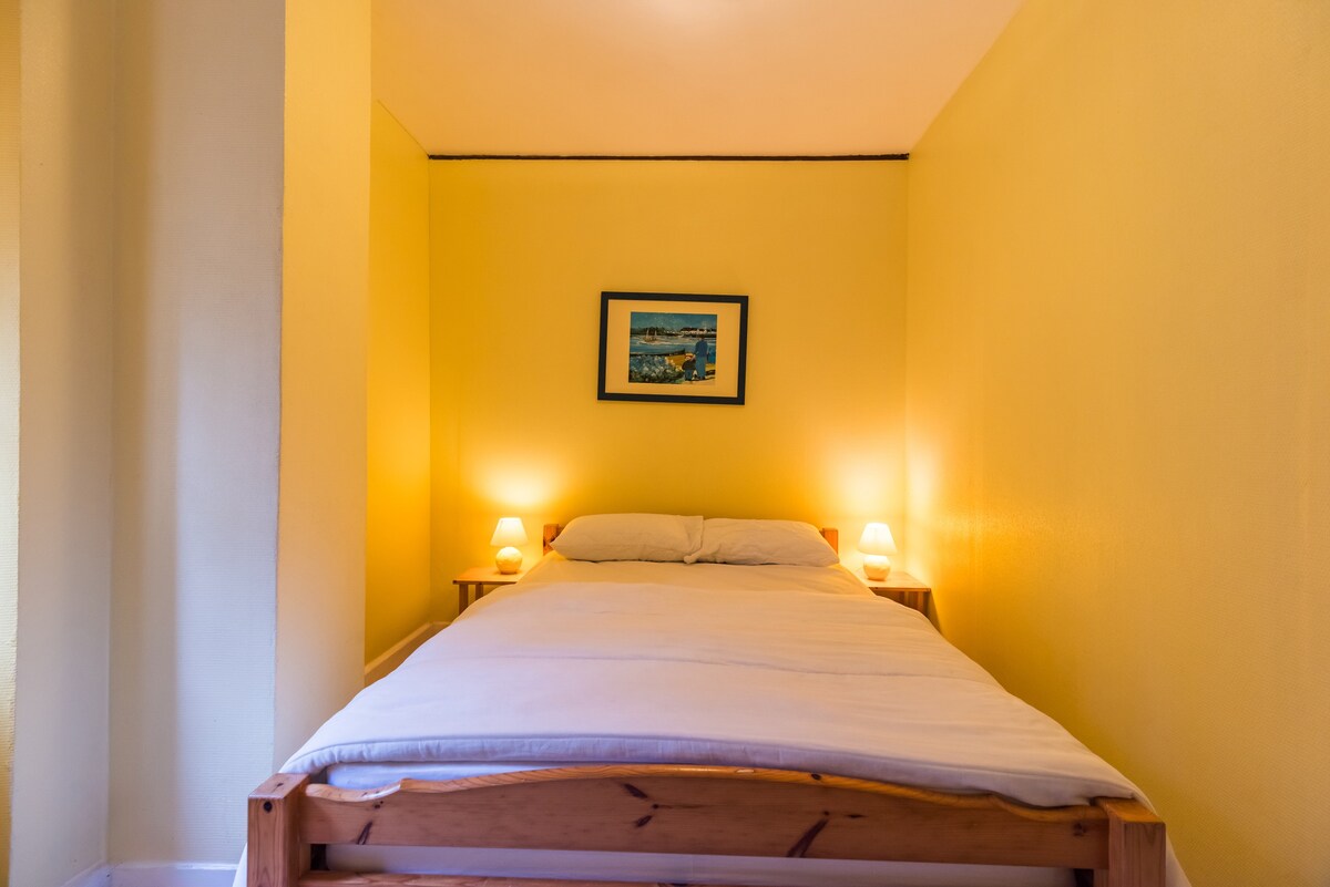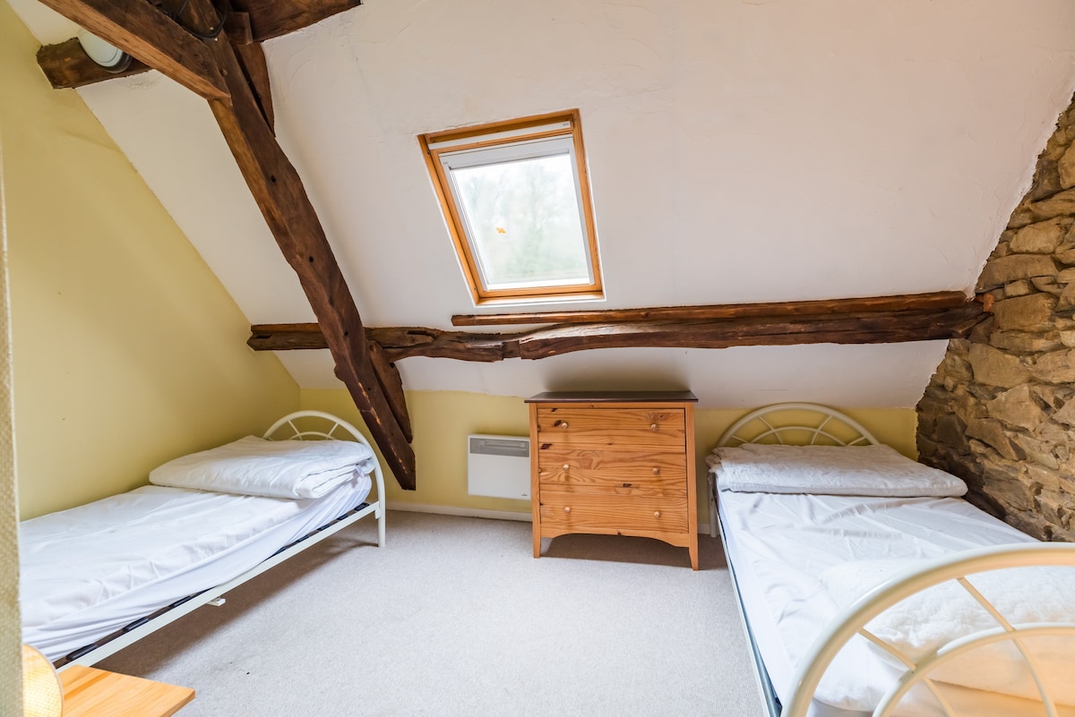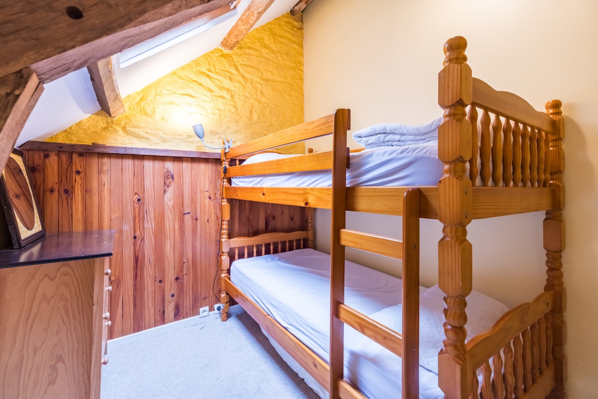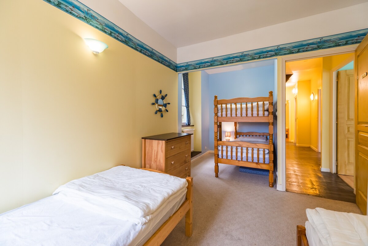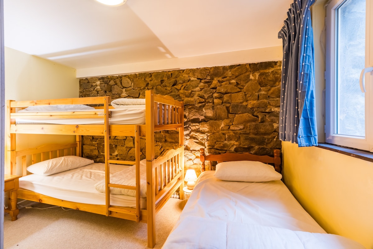 > 8 rooms with single beds: 5 rooms with 2 single beds (2 of which have bunk beds), 1 room with 3 single beds, 1 room with 2 single beds and 2 bunk beds, 1 room with 5 single beds.